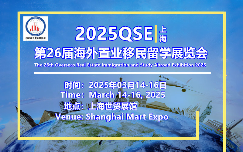 2025QSE上海第26届海外置业移民留学展览会03月14-16日在上海世贸展馆盛大召开! 期待您的参加!