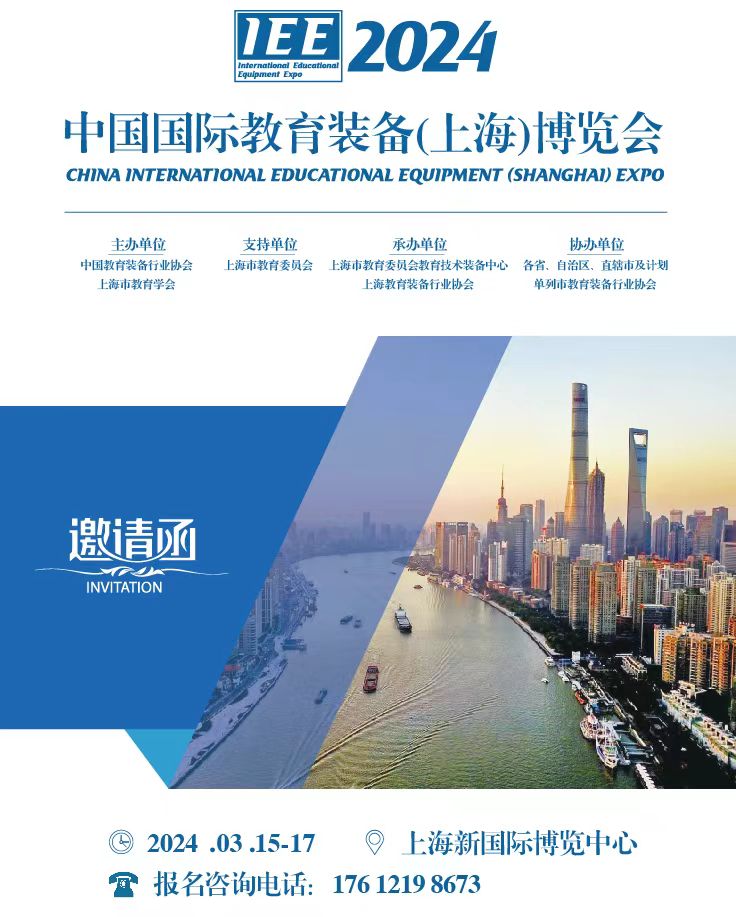 关于举办2024中国国际教育装备(上海)博览会的通知 各省、自治区、直辖市及计划单列市、新疆生产建设兵团教育装备行业协会,教育技术装备处(部、站、中心、办),电化教育馆:为贯彻落实党的二十大精神,深入实施科教兴国战略,以立德树人为根本任务,以全面深化教育领域综合改革为抓手,以增强国内外教育装备研究研发与运用管理为支撑,更好地服务教育强国建设,由中国教育装备行业协会、上海市教育学会主办的2024中国国际教育装备(上海)博览会,将于2024年3月15日-17日在上海新国际博览中心E7馆举办。现将有关事项通知如下: 组织机构 主办单位:中国教育装备行业协会 上海市教育学会 支持单位:上海市教育委员会 承办单位:上海市教育委员会教育技术装备中心 上海教育装备行业协会 协办单位:各省、自治区、直辖市及计划单列市教育装备行业协会