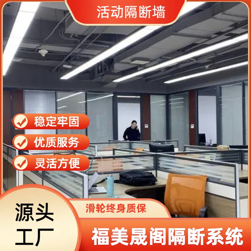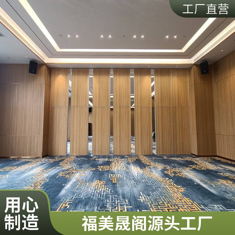 福美晟阁手动隔墙可分为单论和双轮两种做法,根据现场摆放条件不同可以设计出多种多样的风格,且表面装饰材料选择性大,可选择如:布面软包,布面硬包,防火板,亚克力板、铝板喷漆、玻璃、油画布等材料进行装饰,以配合整体设计风格,无需地轨,完全悬吊系统。可根据隔音、高度、预算等要求选择不同型号(65型、85型、100型、超高型)推拉灵活,可折叠摆放,不占用原有空间,广泛应用于酒店宴会厅,展览厅、餐厅、会议室、培训中心、报告大厅等场合的空间灵活切换与分割