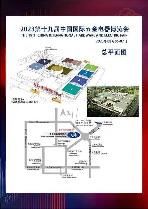 2023年08月05-07日 北京.中国国际展览中心(朝阳馆) 】组织机构 【主办单位】中国五金交电化工商业协会 【协办单位】浙江省五金工具行业协会 深圳市电子行业协会 【承办单位】敬端国际展览(北京)有限公司 浙江侨创智选展览有限公司 ----------------------------------------------------------- 】展会背景 〗中国五金交电化工商业协会,1991年7月22日经民政部登记注册 协会拥有直接会员800余家,通过团体会员和分支机构间接联系会员及企业近万家。协会每年3月在上海主办的中国国际五金博览会已成为全球规模最大的五金专业展会之一,2017年排名世界商展第83位; 协会主办的中国国际五金电器博览会创办于2004年,至今已连续成功举办了十八届,为推动中国优秀五金品牌走向世界,同时为海外产品更快速的进入中国,搭建一个展示、交流、合作的综合平台。 往届展会吸引了来自浙江、北京、上海、广东、山东、湖南、河南、河北等20 多个省市(区)的600余家企业参展,期间参观客商达25000 余人,其中来自德国、瑞典、埃及、巴基斯坦、印度、泰国、叙利亚、伊朗、阿富汗、肯尼亚、阿尔及利亚等境外专业采购商 1000余名。第十九届将由浙江移至北京举行,与上海展形成南北联动,扩大国际经济交流,弥补北方市场空白。 〗北京--国际经济的引擎、北方经济的核心 北京凭借优良的区域位置、国际影响力以及人才优势,很多科研机构、行业协会和国际大企业的总部落户北京,加速中国优秀五金品牌走向世界。二十大报告指出坚持把发展经济的着力点放在实体经济上,加快建设制造强国,五金行业必将大放异彩。 】展会时间、地点 布展时间:2023年8月3日-4日 展览时间:2023年8月5日-7日 地 点:北京˙中国国际展览中心(朝阳馆)(北京市朝阳区北三环东路6号)