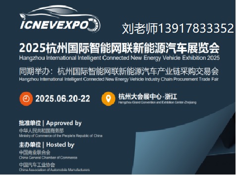 电池展|充电桩展|汽车电子展|车灯展|汽车内饰展|动力电池展|智能驾驶展 新能源车展|2025杭州国际智能网联新能源汽车展览会 Hangzhou International Intelligent Connected New Energy Vehicle Exhibition 2025 时间:2025.6.20-22日 地址:杭州大会展中心 同期举办:一带一路新能源汽车产业链(杭州)采购交易会 Hangzhou International Intelligent Connected New Energy Vehicle Industry Chain Procurement Trade Fai