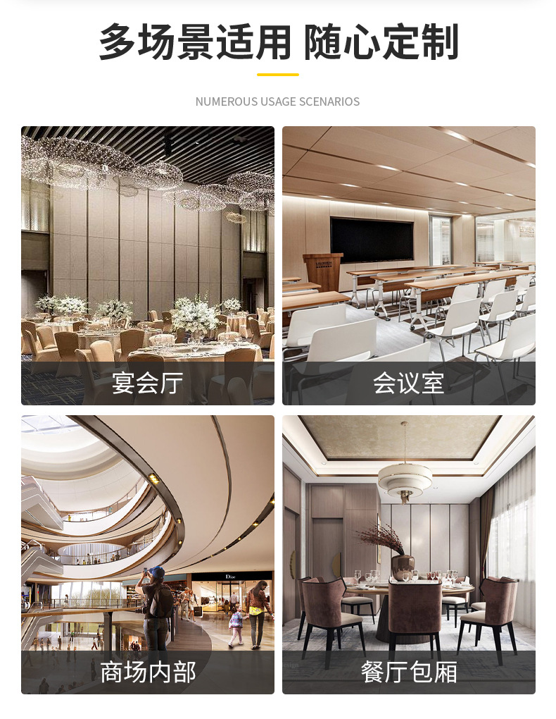图文详情活动隔断主要用于划分空间面积和增加空间,但它不是完全分开的,所以它具有灵活性。这种可变性使空间充满活力,装饰空间。的装饰效果活动隔断比任何家具都好。它不仅霸气十足,更加高贵,而且可以任意改变。 活动隔断分为现代和中国活动隔断。现代的活动隔断主要指活动隔断,它有很好的时尚前沿感。这种活动隔断在材料和设计上大胆新颖,但并不突兀。它放弃了重材料的选择,选择了更轻更时尚的材料,并设计了新的活动隔断大胆使用色度学和几何学。因此,这种活动隔断可以带来更好的室内效果。