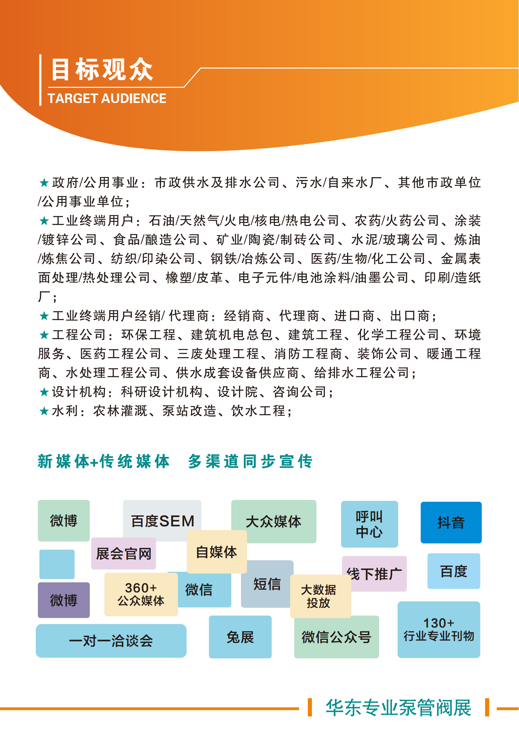 上届展会迎来了近300多家国内外知名企业携带新技术、新设备展出。包括中盛水务、舜禹水务、恒大江海、春江阀门、远大阀门、求是膜、广东申菱、苏州苏净、珠海市邦膜、浙艺管业、布鲁克斯、吉氟利阀门、洛工阀门、恒科阀门、春江阀门、广东鸿阀、朱工阀门、腾龙泵阀、龙泉泵阀、弗雷西阀门、广东愉升、广东碧丽、盘古自动化、南艺管业、卡耐夫管业、协宇管业、天达管业、瀚晨管业、海普尔膜、君耀膜科技、兰江水处理、成达水处理、汇森水处理、云升环境、华净活性炭、热河活性炭、嘉源活性炭、诺尔生物、普洛兰管道、五颗星管道、道雨耐、台州航达等知名企业的大力支持。参展商累计超3900家,观众累计达15万人次,展会的专业性及影响力得到了业界的广泛认可,成为水务领域的重要展会之一。